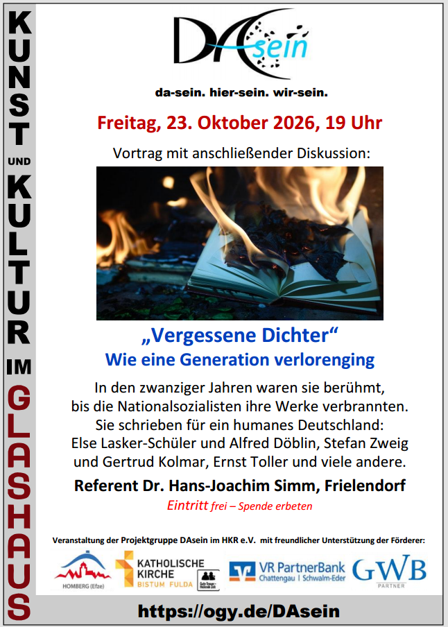 Vortrag mit anschließender Diskussion: „Vergessene Dichter“Wie eine Generation verlorenging In den zwanziger Jahren waren sie berühmt, bis die Nationalsozialisten ihre Werke verbrannten.Sie schrieben für ein humanes Deutschland: Else Lasker-Schüler und […]